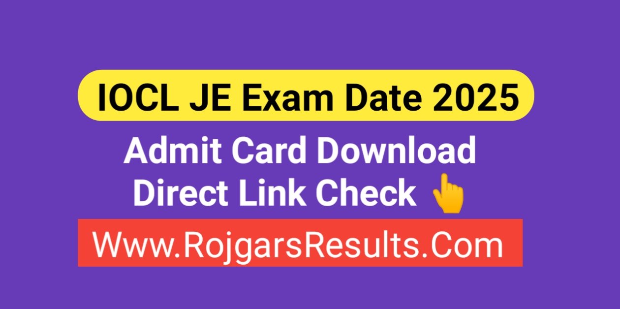 IOCL JE Exam Date 2025 Out Check Admit Card Download Link : IOCL (Indian Oil Corporation Limited) has Released Exam Date For IOCL Junior Engineer (JE) Recruitment 2025 Check Exam Date & Admit Card Download Link Details Which is given Below.